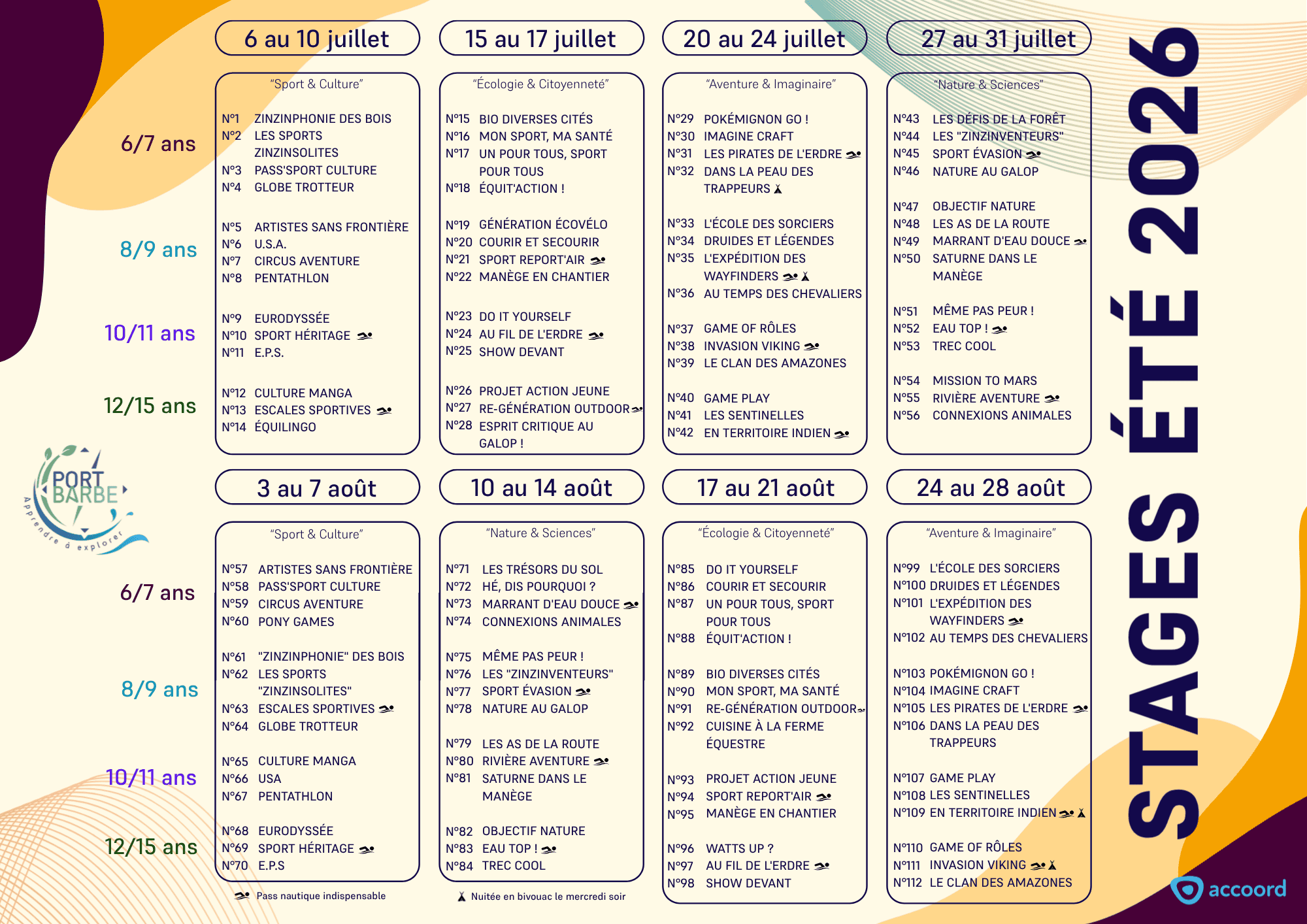 La démarche éducative de l’Accoord visant à sensibiliser à la protection de l’environnement, notre équipe propose des stages à thème avec des activités sportives mais aussi des programmes axés sur la culture, les sciences et la découverte de l’environnement.