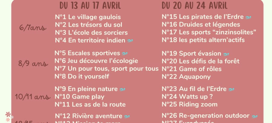 Programme des stages de printemps 2026