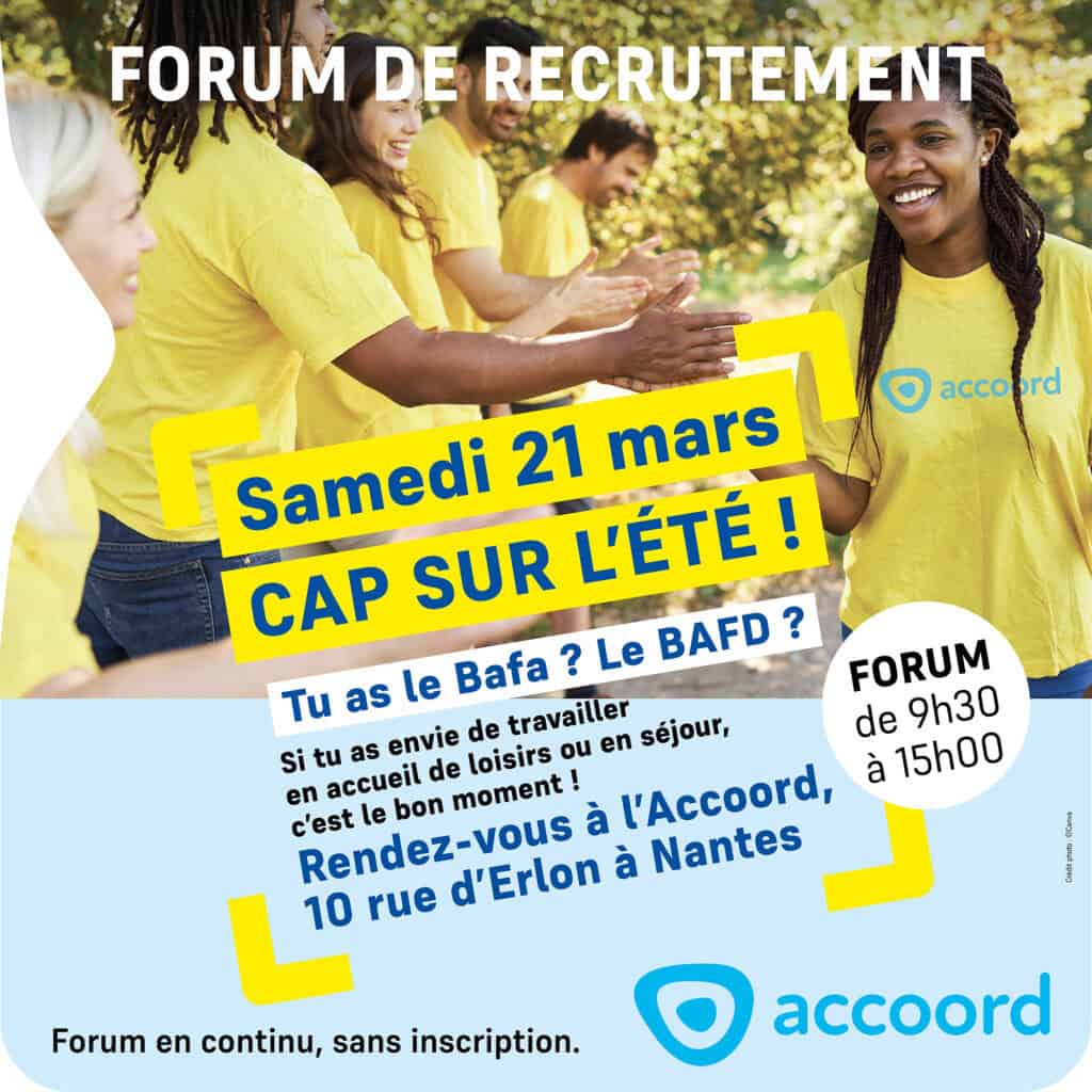 L’Accoord organise son forum de recrutement estival. Au programme : des stands pour découvrir les métiers de l’animation et rencontrer nos équipes, suivi d’un job dating.
